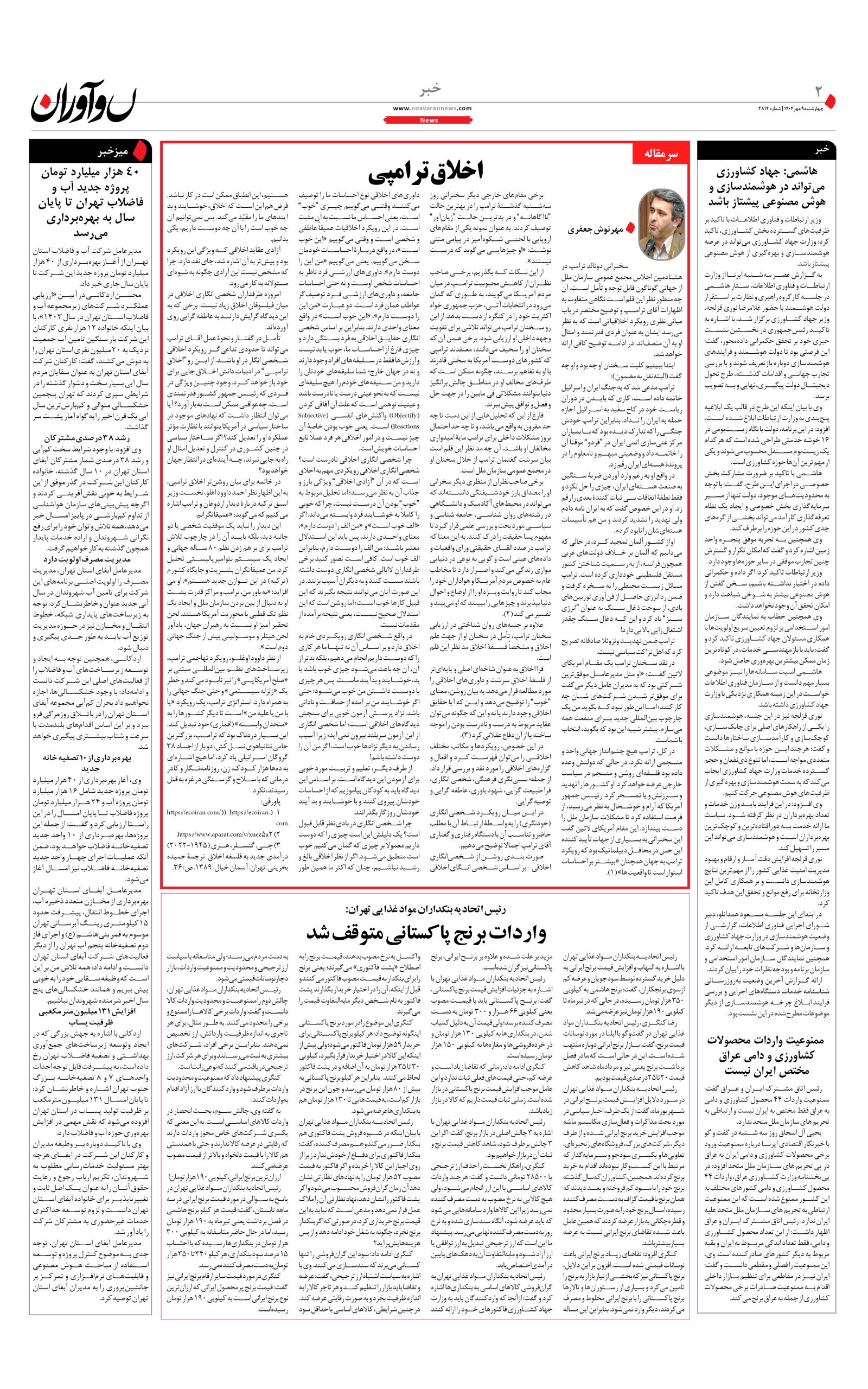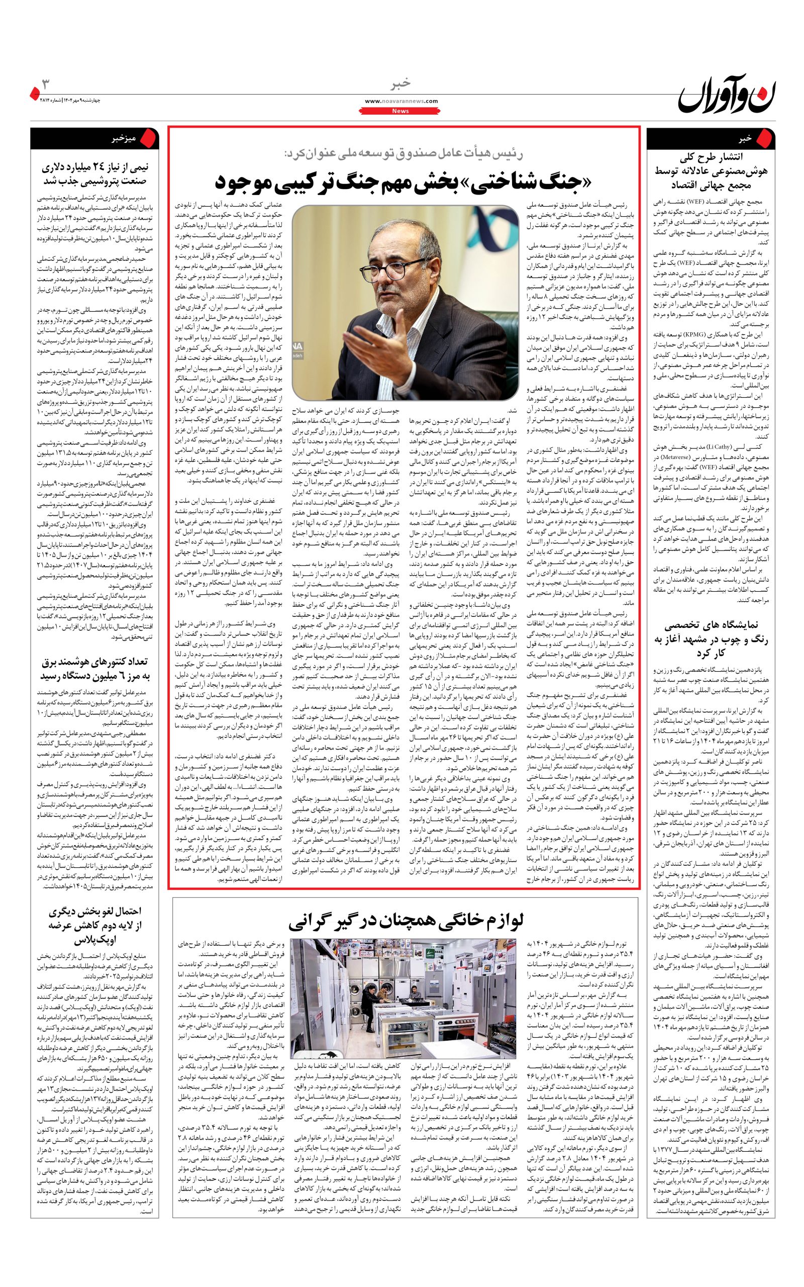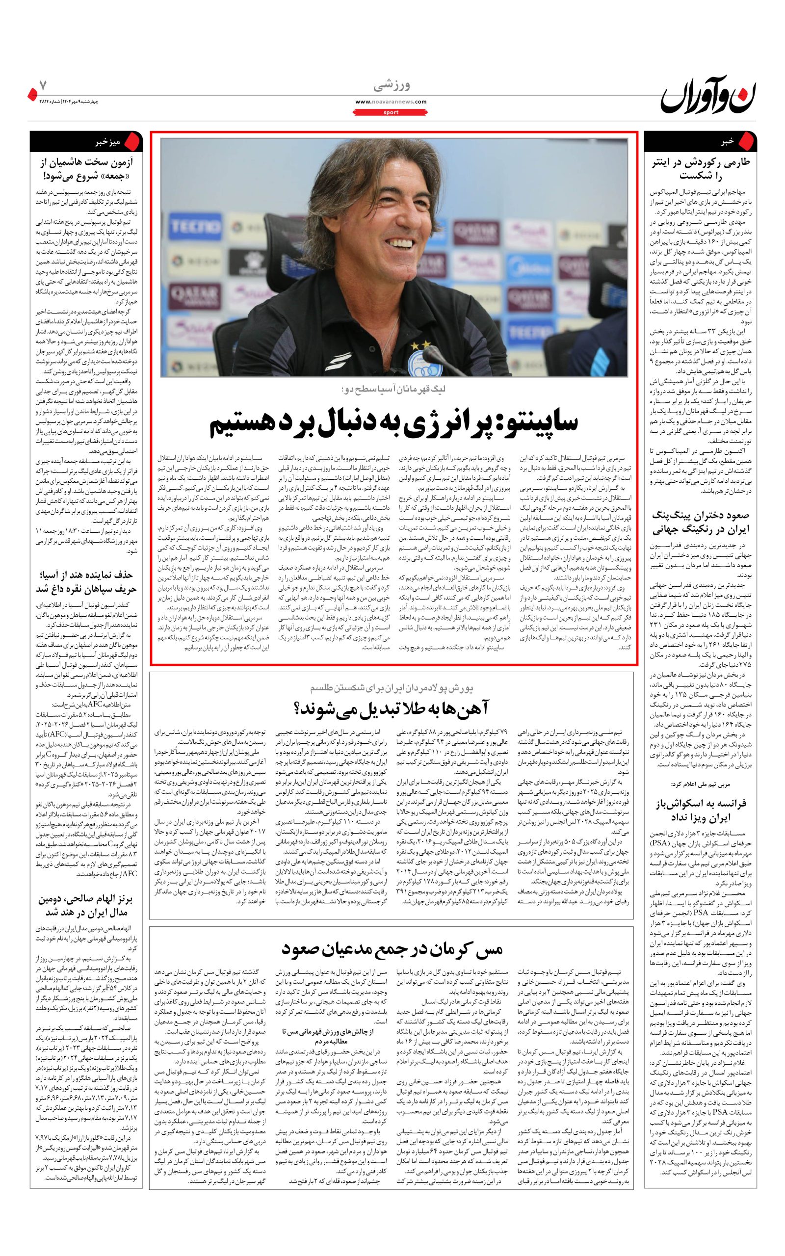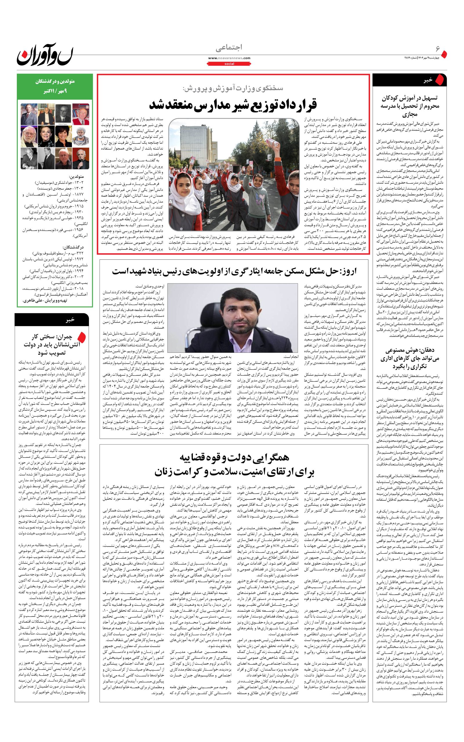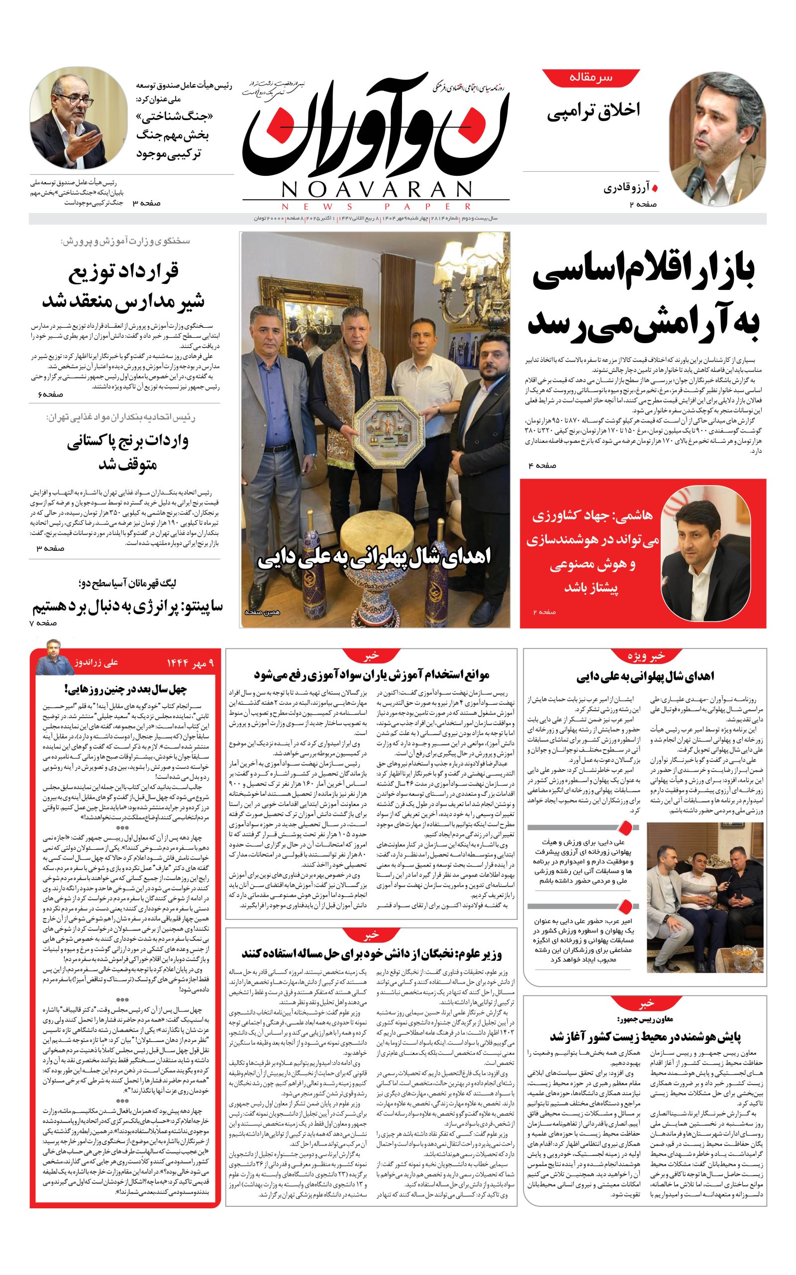 روزنامه نوآوران 9 مهر 1404